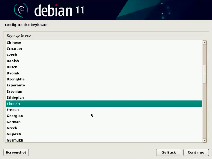 Valitse näppäimistöasetteluksi Finnish ja klikkaa