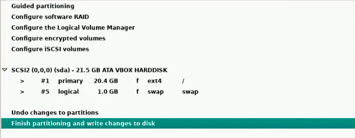- Kohdassa Partition disks määritellään kiintolevyn osiointi.
