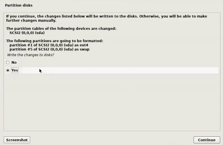 All files in one partition (recommended for new users). Klikkaa - Seuraavaksi näytetään partitioinnin yhteenveto.